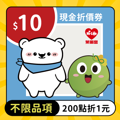 萊爾富─【不限品項】10元現金折價券