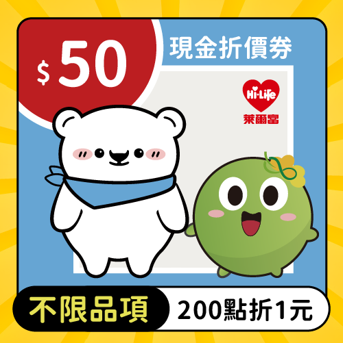 萊爾富─【不限品項】50元現金折價券