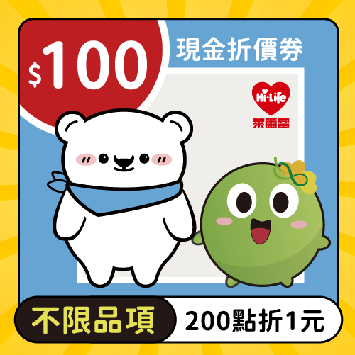 萊爾富─【不限品項】100元現金折價券