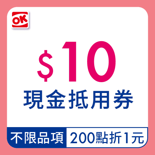 OK超商─【不限品項】現金折價券10元