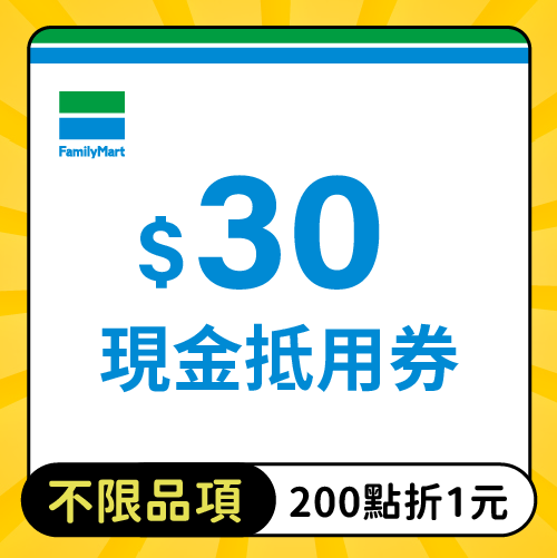 全家便利商店─【不限品項】30元商品抵用券
