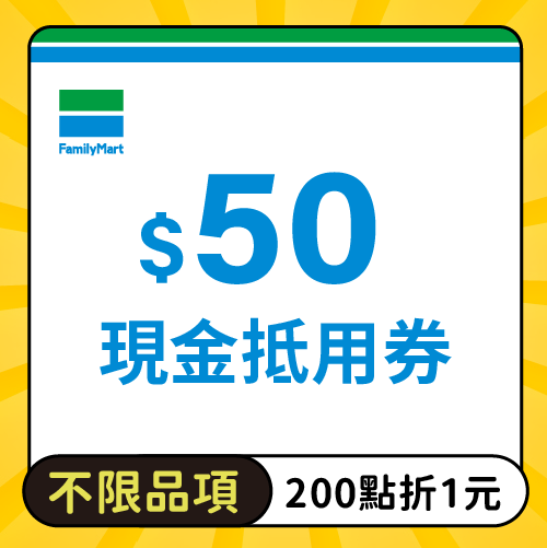 全家便利商店─【不限品項】50元商品抵用券